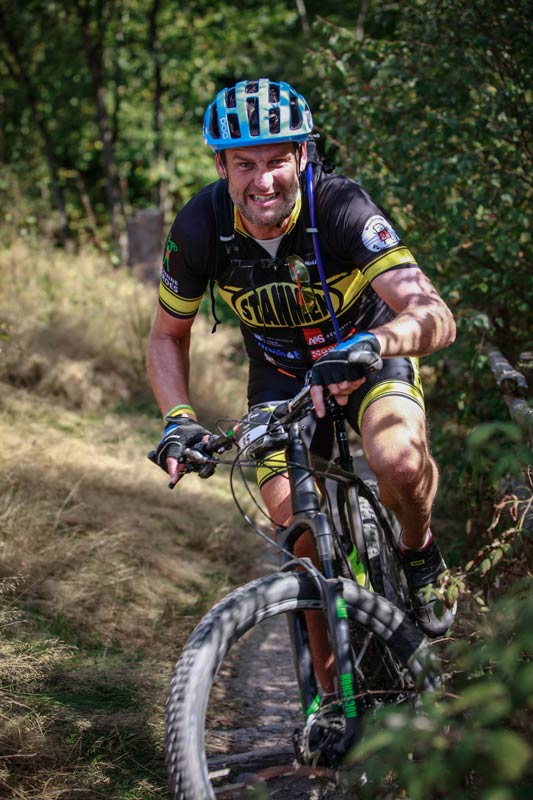 Zondag 9 september, alle bikers staan aan de start. Jan-Willem was de enige debutant binnen ons team en de spanning stond op zijn gezicht te lezen. Elk team wordt gepresenteerd en na 30 minuten mogen wij van start…. eindelijk! Snel nog even een teamfoto samen met Stan en we gaan. De eerste dag is altijd een dag om geleidelijk in te komen 101km 1700hm dat ging redelijk eenvoudig. In tegenstelling tot vorig jaar was de eerste dag direct een hele leuke mooie route, na een slow start is het echt genieten geblazen. Met een brede lach komen we over de finish, de kop is er af!