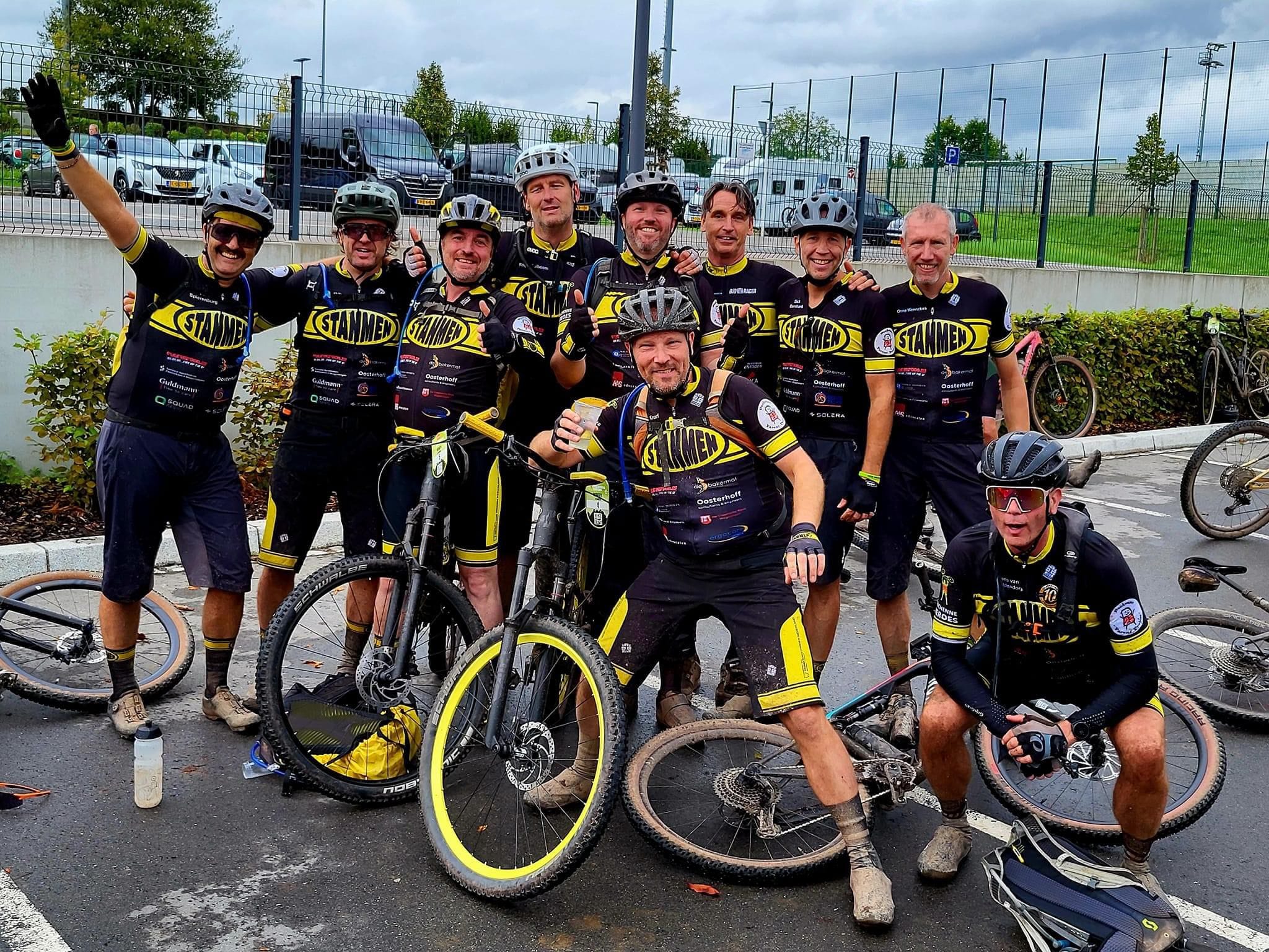 Donderdag is een beetje ambivalent. Qua route tot CP2 verreweg de mooist van deze week. Qua weer is het koud en nat. Dus op CP’s wordt kort gewacht om niet steenkoud te worden. De tracks zijn geweldig, gave afdalingen en geweldige klimmen. Na CP2 komt de echte ellende. Robert rijdt lek en was op CP2 al koud geworden, na dit bandje wisselen was hij weer steenkoud. De motivatie gaat uit het raam. Bij een overgang wordt het komende klimprofiel bekeken en ook de mogelijkheid om dat te omzeilen. Dit laatste stuk slaat hij en Ruben over en rijden na een half uur de camping op. Alhoewel…camping? Het is een soort gras parkeerplaats dat bij het circuit van Spa hoort. Wat een doffe ellende, alles is nat het gras is hoog, het sanitair beperkt. Er wordt snel gedoucht zodat ze de andere boys kunnen binnenhalen. Dit duurt lang, erg lang…er komen steeds weer een plukje fietsers over de finish en hoe later het wordt hoe meer dit gepaard gaat met tranen. Mensen worden opgevangen met alu dekens. Het is het laatste uur ook enorm gaan regenen en de route van CP2 naar finish blijkt haast onbegaanbaar. Om 19uur komen dan ook de laatste Stanmen de finish over. Rik, Rogier en Onno hebben volhardend besloten om de hele route uit te rijden. Ze zijn volledig gesloopt. De sfeer op de camping is wat bedrukt, avondprogramma is matig bezocht en de bedden worden vroeg bemand.
