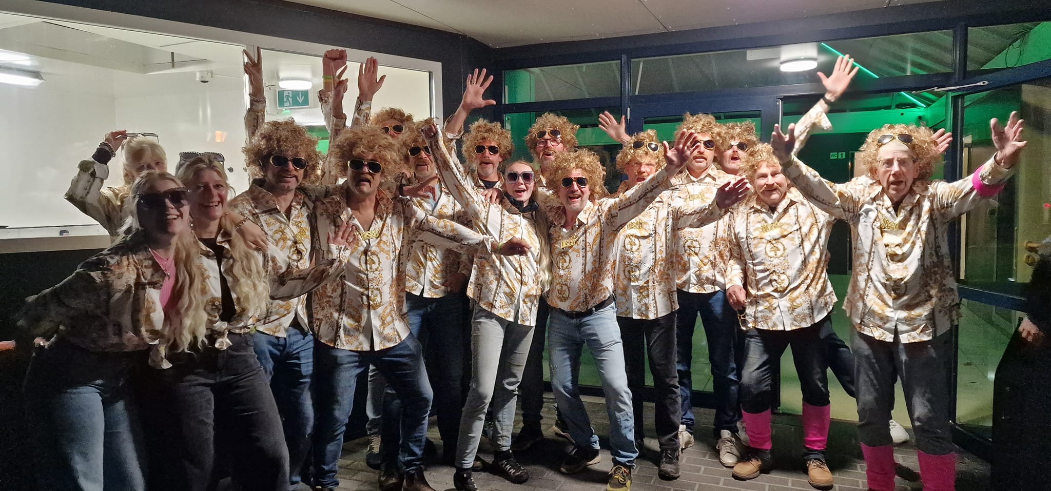 Maar dan is het alweer vrijdag en dat betekent natuurlijk de feestavond. Eerst moet er nog een “stukje” worden gefietst. Dit blijkt ook weer geen vanzelfsprekendheid. Bij team Ruben en Robert gaat van alles stuk, twee keer een ketting, daarna een paar andere fietsers uit de brand helpen omdat zij geen navigatie meer hadden, vervolgens weer een ketting….dit is dus zo’n dag. Ook het andere team gaat niet voorspoedig en komt vrij laat over de finish. Het eten blijkt op deze camping matig en karig. Dit doet de sfeer niet goed. Maar dan als bij toverslag, de sfeer kikkert op. De verkleeddoos wordt opengetrokken voor de feestavond. We gaan dit jaar allemaal als foute man / vrouw gekleed. Het is hilarisch, de vrouwen met lange blonde starten zilveren sieraden en foute blouse en de mannen met dito blouse, foute krullenpruik en gouden bril. Niemand weet nog wie wie is en het feest barst los tot in de late uurtjes.